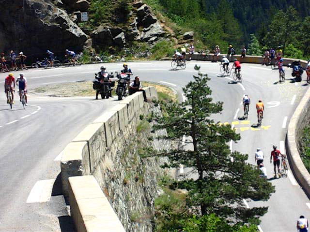 Going past the entrance to the tunnel is a mental test. At one point you can just about see straight through to the riders descending on the other side. then you look up and realise you still have 1km of road and 100m of altitude to get up. On the last section I admit to having to stop to drink a couple of times. The breathing was struggling and the heart was pounding, and I just couldn't drink and ride at the same time. Obviously I had to ride past the video camera and photographers looking good !!